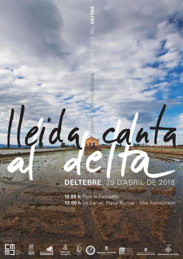 El 2018 vam portar la música i els cantaires riu avall. El repte era descobrir el Delta i fusionar els cants entre la rica cultura d’aquelles contrades. Fou el Lleida Canta més nombrós, amb 42 corals participants. També s’hi van sumar 3 bandes de música, grups de jota, rondalla i un bon grapat d’entitats de Deltebre que van facilitar la logística i el bon ambient. La trobada s’inicià al pont lo Passador, amb el neguit d’un cel tapat, i la sorpresa del Joan Rovira i els infants de la Societat Musical Espiga d’Or a l’escenari. Després, 28 autocars van portar els participants a cantar a la platja de Riumar, al Garxal, la desembocadura, i a la finca del Mas Tramuntano per cantar a l’arròs. A cada indret rebien els participants actors i actuacions musicals del Delta. A l’espai firal de Deltebre vam encabir 1500 persones que van degustar paella i menjar blanc i van acabar la jornada amb el ritme de Suc d’Anguila, una formació ebrenca.